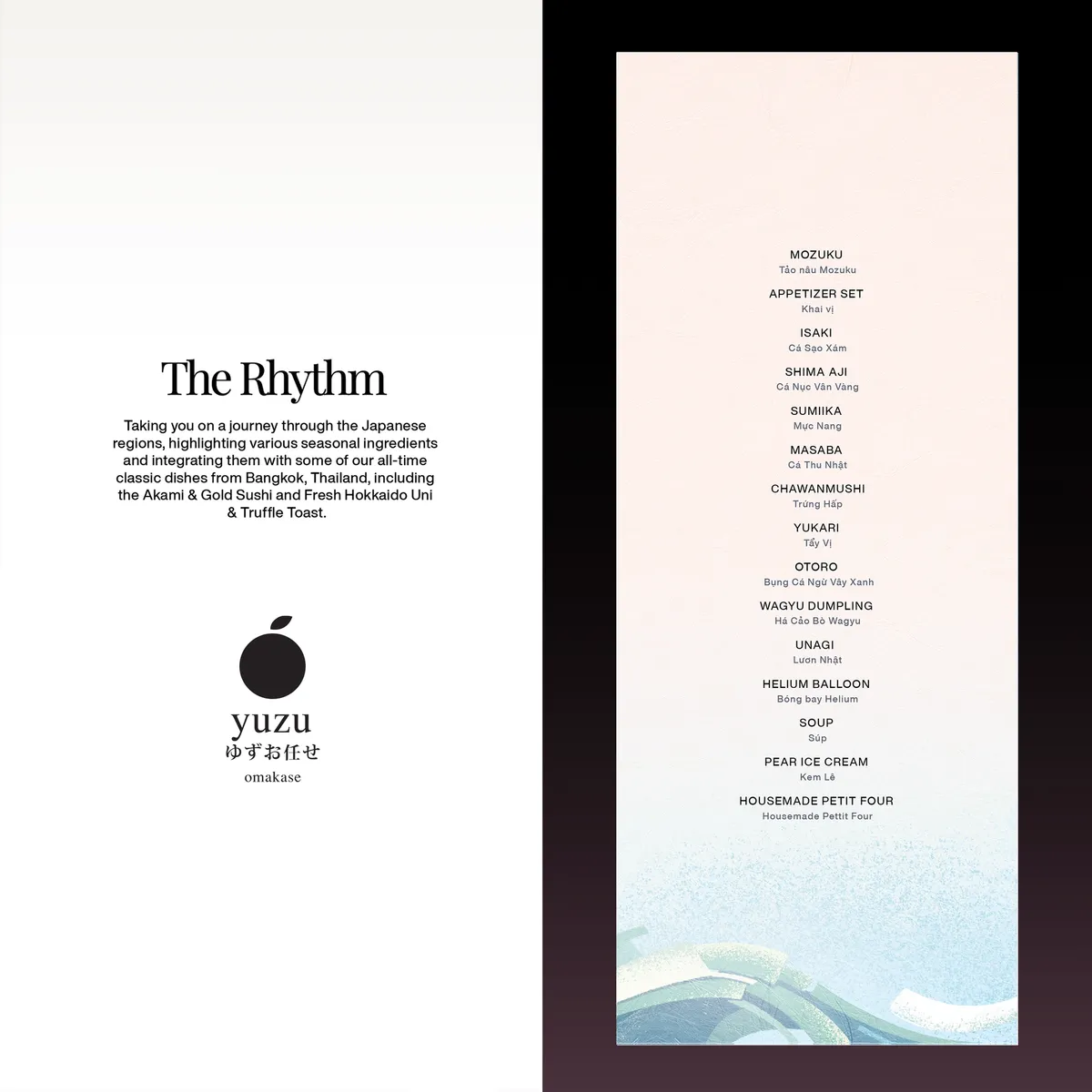 The Rhythm là cách Yuzu kể câu chuyện mùa Xuân một cách kịch nghệ và đầy cảm hứng dành cho những ai tìm kiếm sự tươi mới và tinh tế trong một bữa trưa Omakase đương đại.